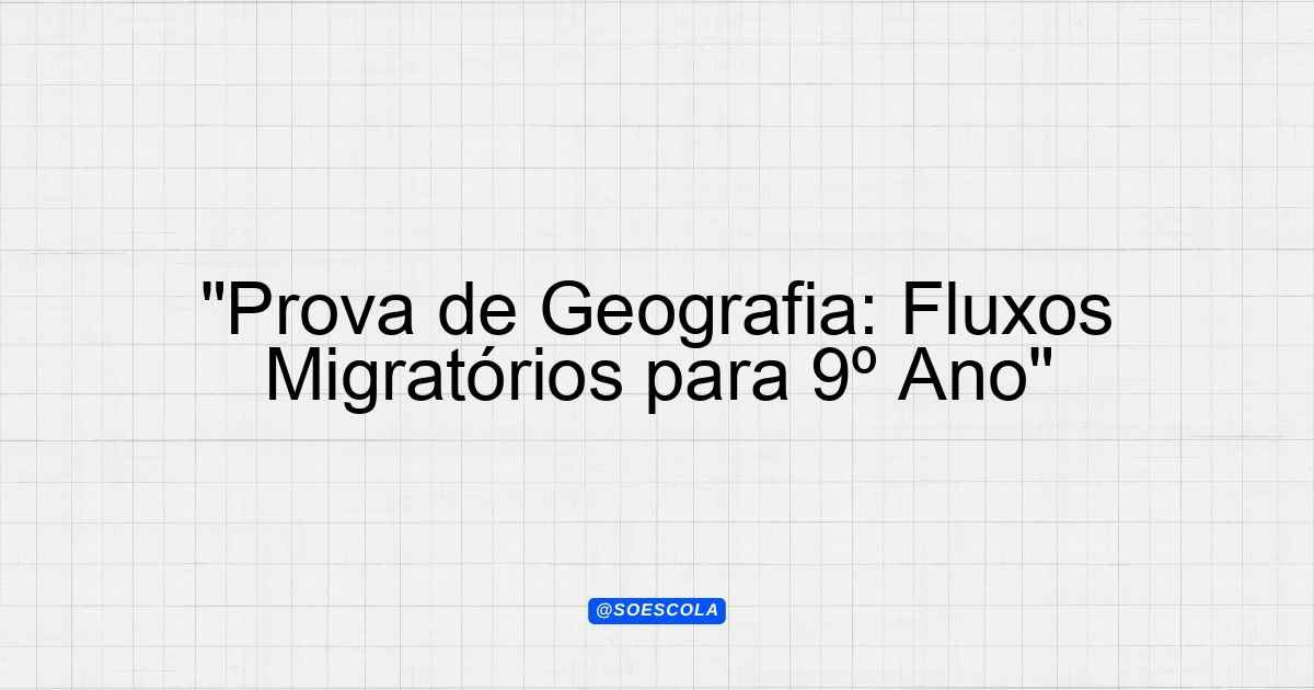 Continue lendoTema: Fluxos migratóriosEtapa/Série: 9º anoDisciplina: GeografiaQuestões: 10 Prova de Geografia – 9º Ano Tema: Fluxos Migratórios — Instruções: Leia atentamente