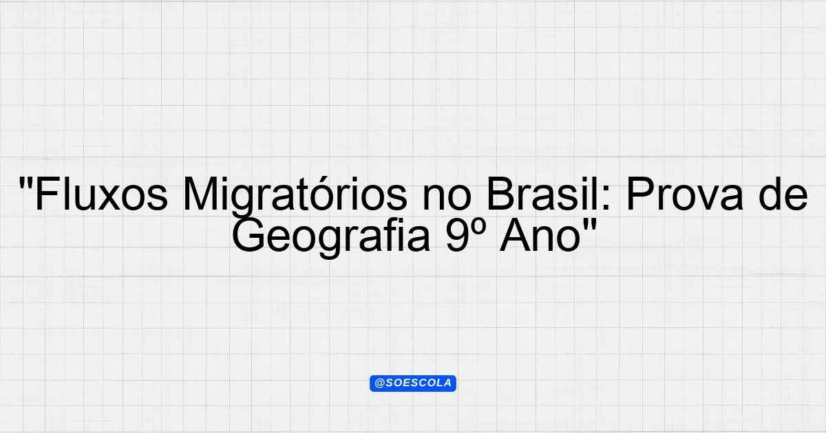 Continue lendoTema: Fluxos migratórios e o BrasilEtapa/Série: 9º anoDisciplina: GeografiaQuestões: 10 Prova de Geografia – 9º Ano Tema: Fluxos Migratórios e