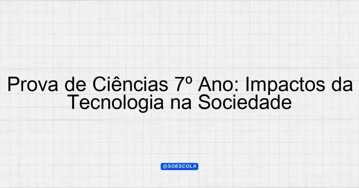 Continue lendoTema: TECNOLOGIA E SOCIEDADEEtapa/Série: 7º anoDisciplina: CiênciasQuestões: 12 Prova de Ciências – 7º Ano Tema: Tecnologia e Sociedade — Nome
