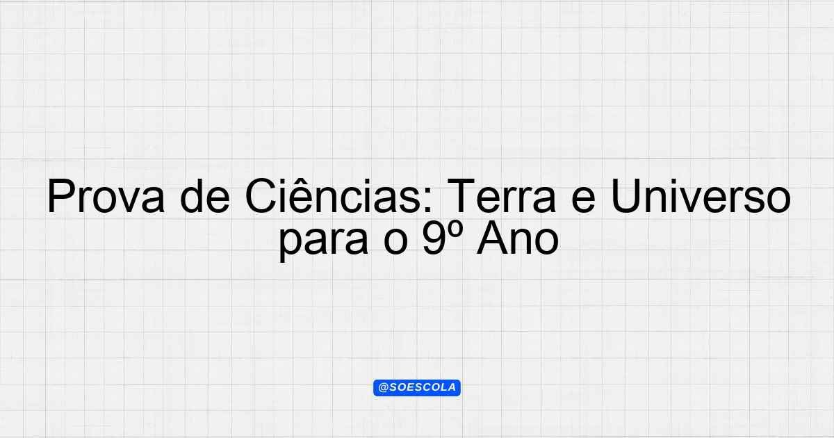 Continue lendoTema: TERRA E O UNIVERSOEtapa/Série: 9º anoDisciplina: CiênciasQuestões: 12 Prova de Ciências – 9º Ano Tema: Terra e o Universo