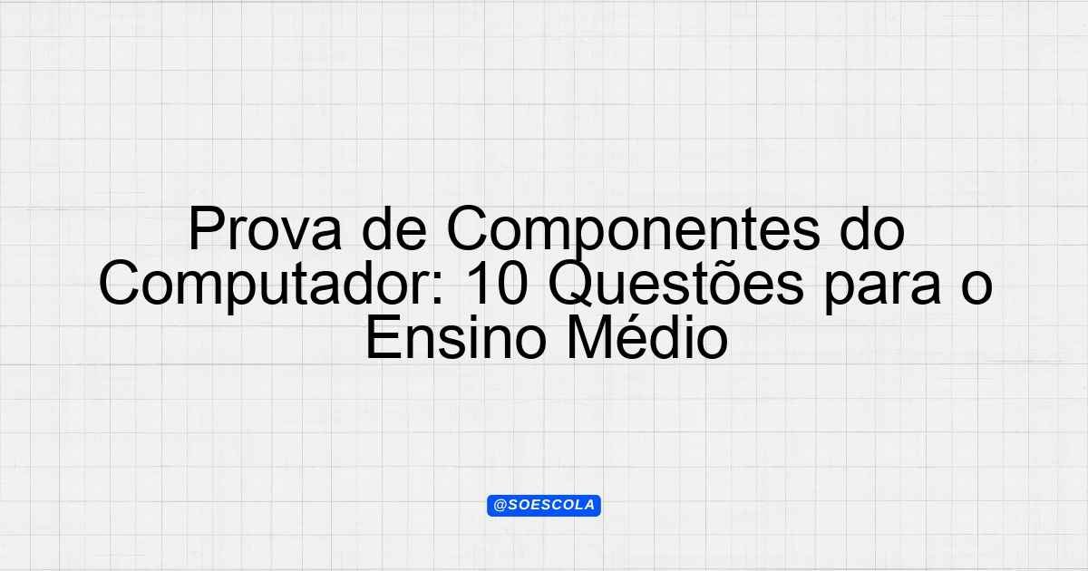 Continue lendoTema: Componentes e Estruturas do ComputadorEtapa/Série: 1º ano – Ensino MédioDisciplina: Formação Técnica e ProfissionalQuestões: 10 Prova de Formação Técnica