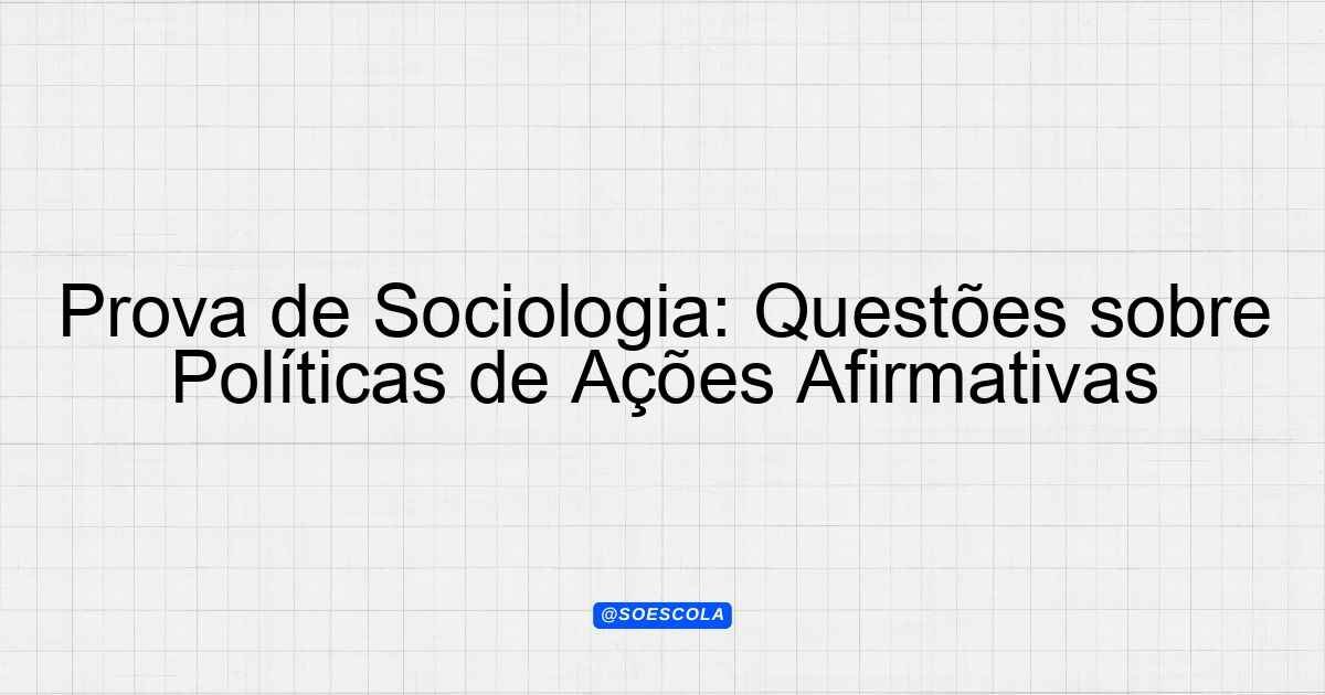 Continue lendoTema: Políticas de Ações AfirmativasEtapa/Série: 2º ano – Ensino MédioDisciplina: SociologiaQuestões: 6 Prova de Sociologia – Políticas de Ações Afirmativas