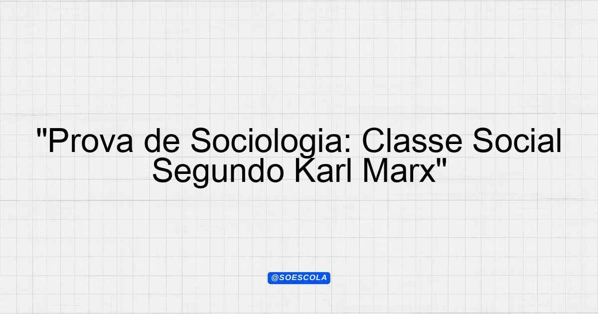 “Prova de Sociologia: Classe Social Segundo Karl Marx”