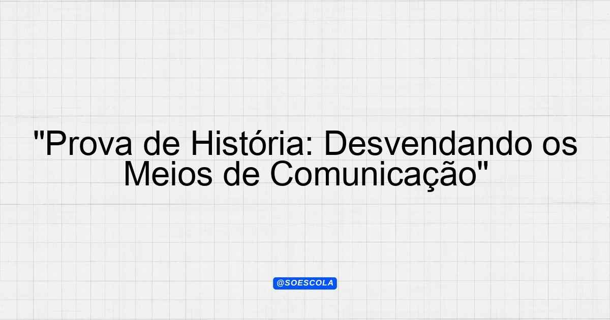 Continue lendoTema: os meio de comunicaçãoEtapa/Série: 4º anoDisciplina: HistóriaQuestões: 3 Prova de História: Os Meios de Comunicação Nome do Aluno: ______________________________________
