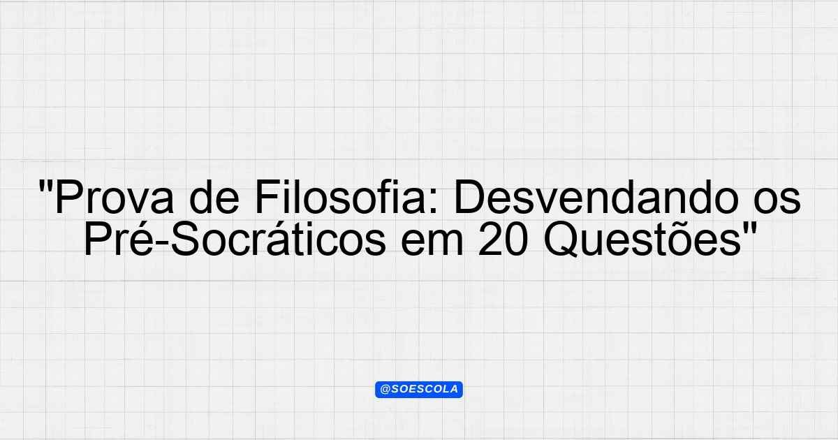 Continue lendoTema: pré-socráticosEtapa/Série: 2º ano – Ensino MédioDisciplina: FilosofiaQuestões: 20 Prova de Filosofia: Pré-Socráticos Nome: ___________________________________ Data: ____________________________________ Instruções: Esta prova