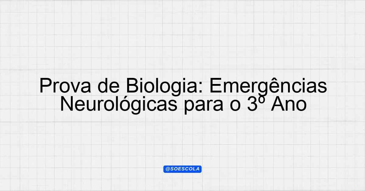 Continue lendoTema: emergências neurológicasEtapa/Série: 3º ano – Ensino MédioDisciplina: BiologiaQuestões: 10 Prova de Biologia: Emergências Neurológicas Turma: 3º ano – Ensino