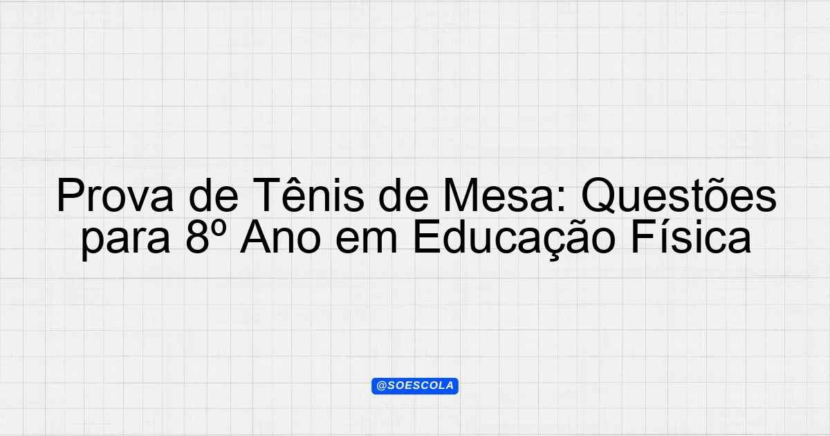 Continue lendoTema: TÊNIS DE MESAEtapa/Série: 8º anoDisciplina: Educação FísicaQuestões: 10 “`html Prova de Educação Física – 8º Ano Tema: Tênis de