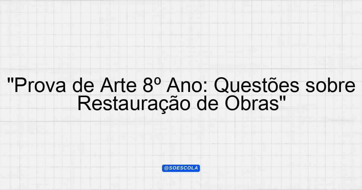 Continue lendoTema: ARTE E RESTAURAÇÃOEtapa/Série: 8º anoDisciplina: ArteQuestões: 6 Prova de Arte – 8º Ano Tema: Arte e Restauração Leia atentamente