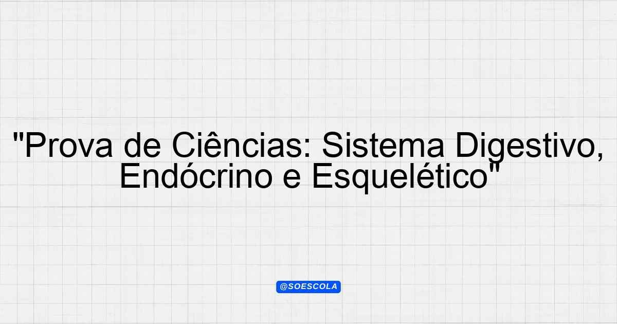 Continue lendoTema: sistema digestivo, sistema endócrino e sistema esqueléticoEtapa/Série: 8º anoDisciplina: CiênciasQuestões: 12 Prova de Ciências – 8º Ano Tema: Sistema