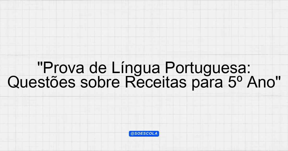 Continue lendoTema: receitaEtapa/Série: 5º anoDisciplina: Língua PortuguesaQuestões: 10 Prova de Língua Portuguesa – 5º Ano Tema: Receita Instruções: Leia atentamente cada