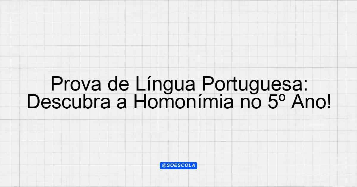 Continue lendoTema: homonímiaEtapa/Série: 5º anoDisciplina: Língua PortuguesaQuestões: 5 Prova de Língua Portuguesa – 5º Ano Tema: Homonímia Instruções: Leia atentamente cada