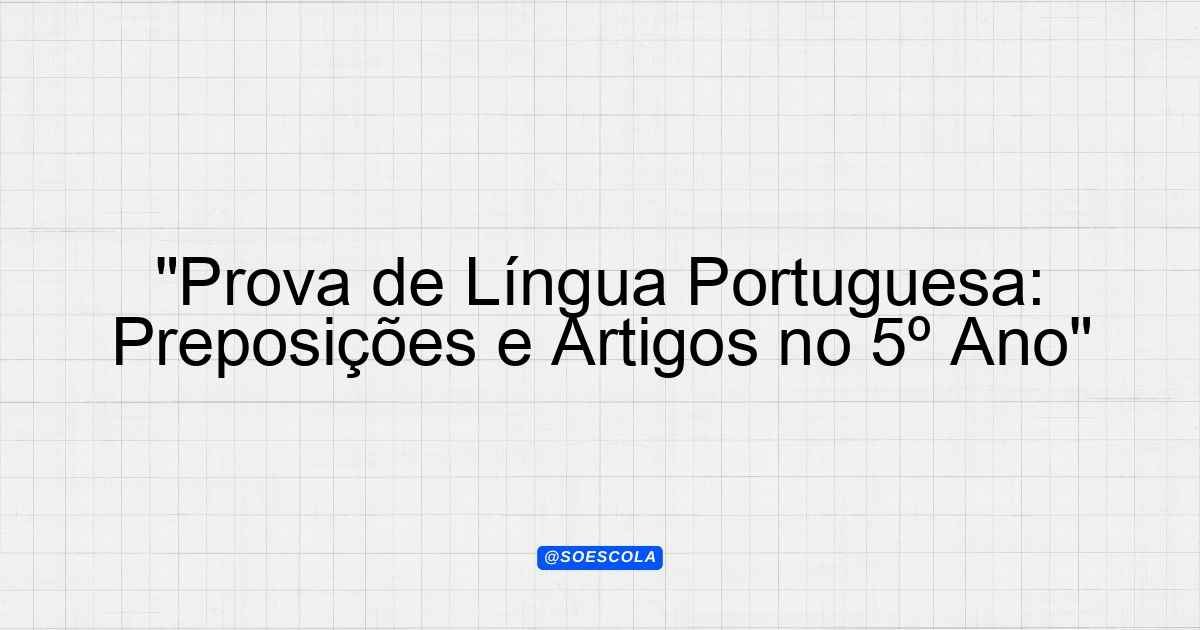 Continue lendoTema: uso de preposição com artigoEtapa/Série: 5º anoDisciplina: Língua PortuguesaQuestões: 5 Prova de Língua Portuguesa – 5º Ano Esta prova
