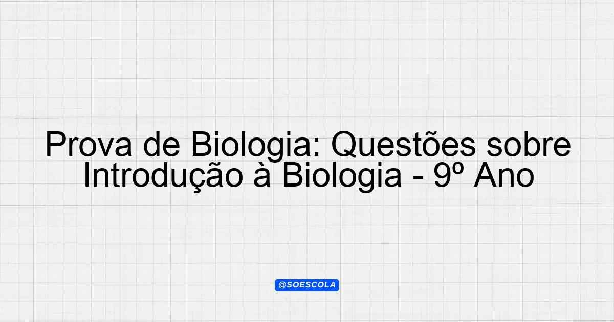 Continue lendoTema: Introdução a biologiaEtapa/Série: 9º anoDisciplina: BiologiaQuestões: 5 Prova: Introdução à Biologia – 9º Ano Instruções: Responda as questões a