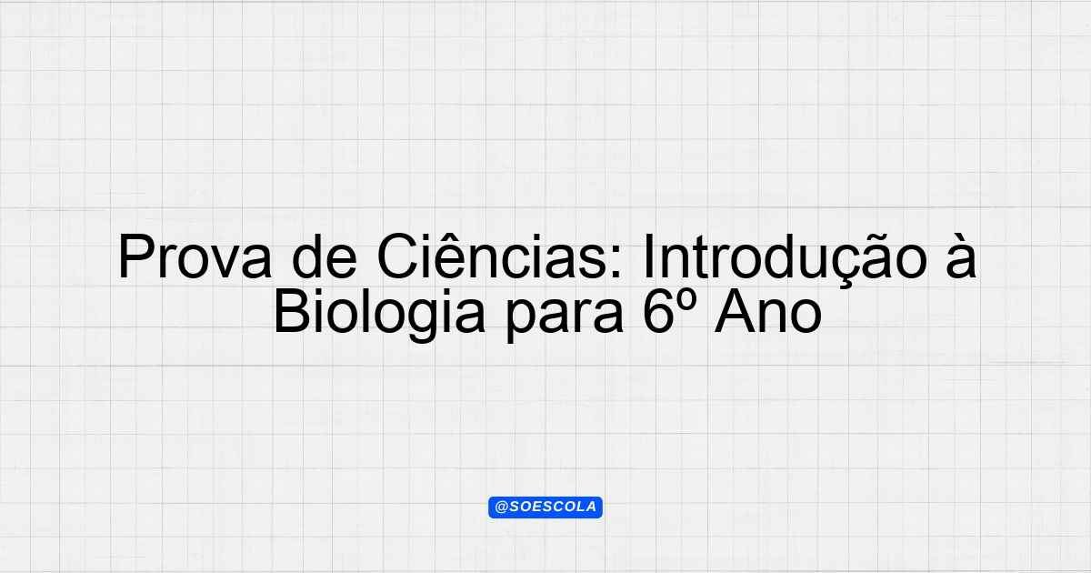 Continue lendoTema: Introdução a biologiaEtapa/Série: 6º anoDisciplina: CiênciasQuestões: 3 Prova de Ciências – 6º Ano Tema: Introdução à Biologia Instruções: Leia
