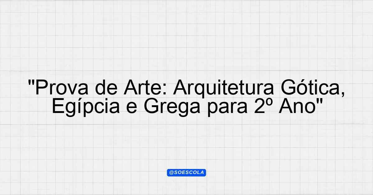 Continue lendoTema: arquitetura gótica, arquitetura egipcia, arquiteura grega, arte como subversãoEtapa/Série: 2º anoDisciplina: ArteQuestões: 20 Prova de Arte – 2º Ano