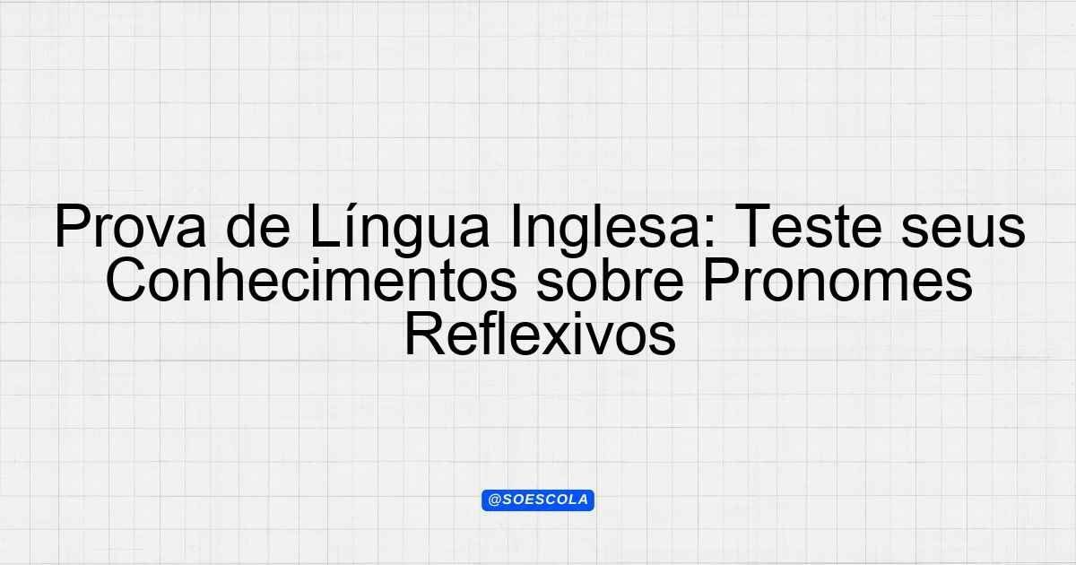 Continue lendoTema: reflexive pronounsEtapa/Série: 9º anoDisciplina: Língua InglesaQuestões: 10 Prova de Língua Inglesa – Reflexive Pronouns Instruções: Leia com atenção cada