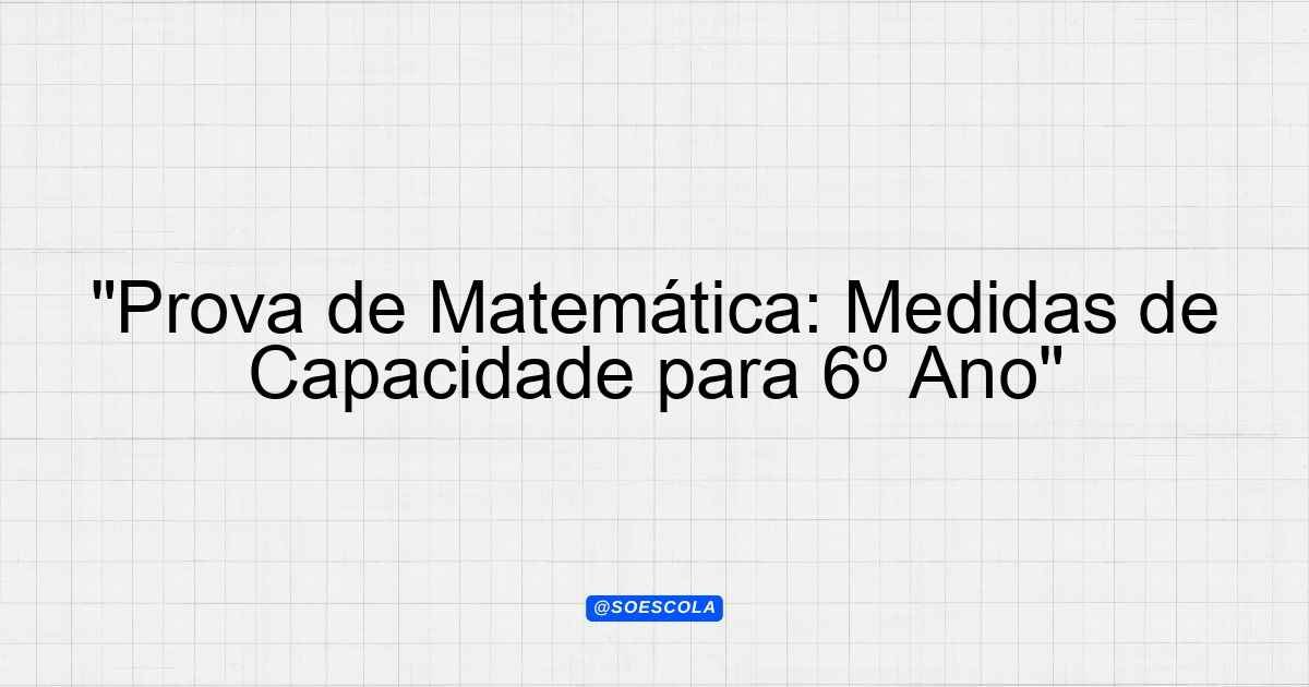 Continue lendoTema: medidas de capacidadeEtapa/Série: 6º anoDisciplina: MatemáticaQuestões: 15 “`html Prova de Matemática – 6º Ano Tema: Medidas de Capacidade Instruções: