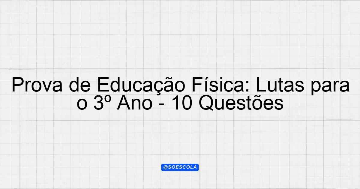 Continue lendoTema: LUTASEtapa/Série: 3º anoDisciplina: Educação FísicaQuestões: 10 Prova de Educação Física – Tema: Lutas Nome do Aluno: ___________________________________ Data: ____________