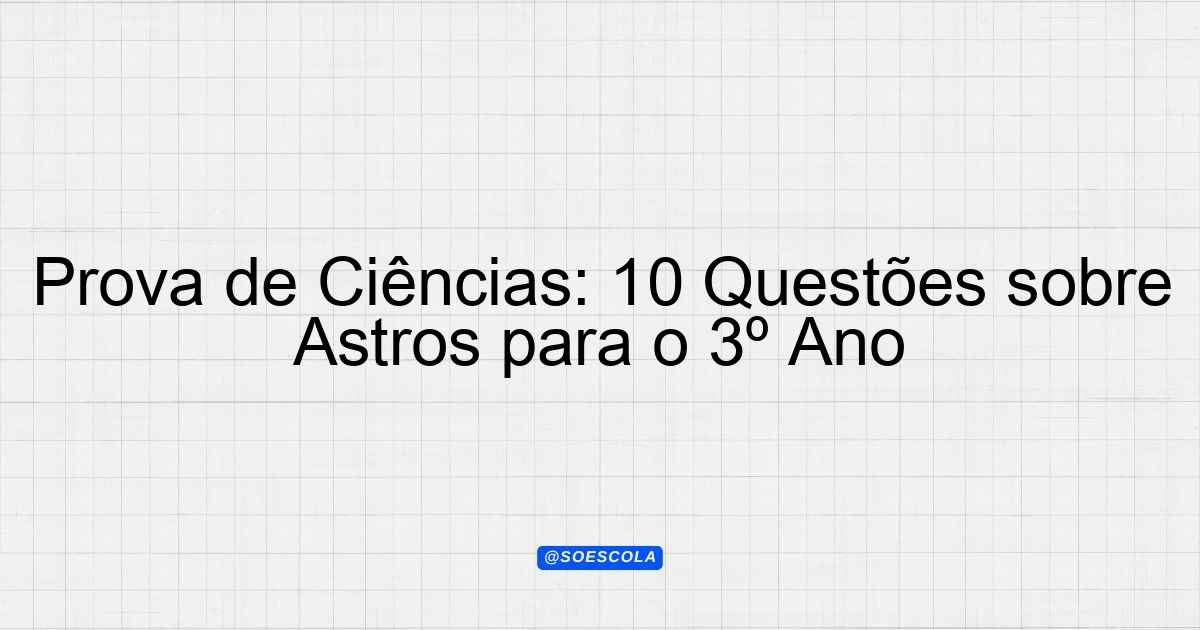 Continue lendoTema: astrosEtapa/Série: 3º anoDisciplina: CiênciasQuestões: 10 Prova de Ciências – Tema: Astros Nome do aluno: _________________________________ Data: __/__/____ Instruções: Leia