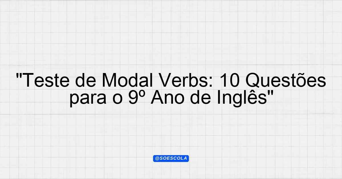 Continue lendoTema: MODAL VERBSEtapa/Série: 9º anoDisciplina: Língua InglesaQuestões: 10 Prova de Língua Inglesa – 9º Ano Tema: Modal Verbs Abaixo, você