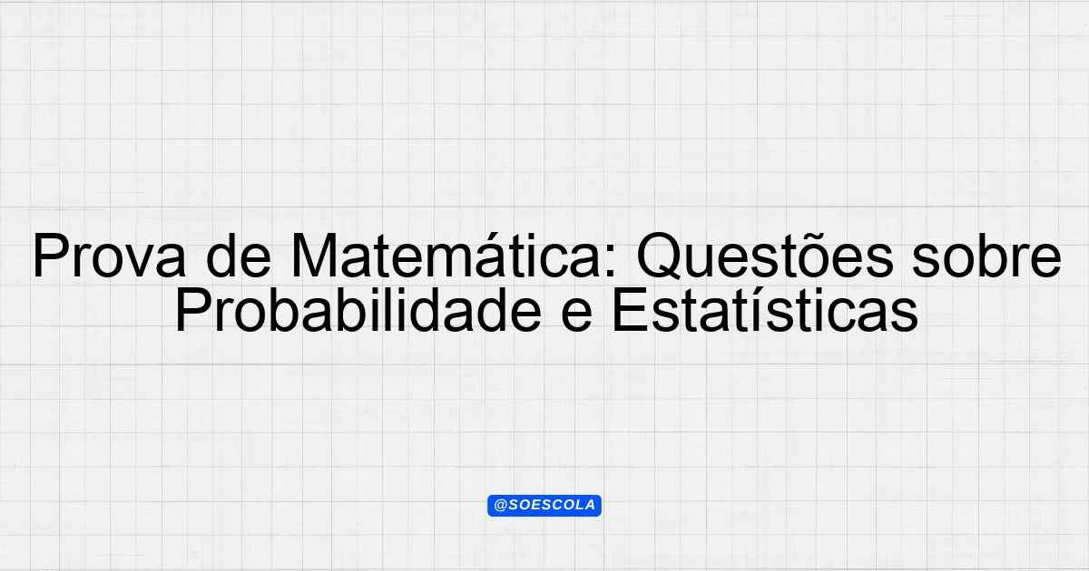 Continue lendoTema: Probabilidade e EstatísticasEtapa/Série: 4º anoDisciplina: MatemáticaQuestões: 10 Prova de Matemática: Probabilidade e Estatísticas Aluno(a): _______________________ Data: ____/____/____ Instruções: A