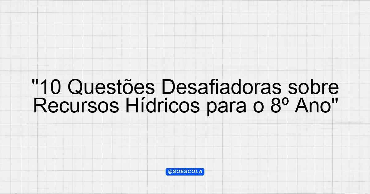 Continue lendoQuestões sobre: Recursos hídricos 📚 Área: Ciências Humanas 🎓 Nível: 8º Ano – Ensino Fundamental II 📊 Quantidade: 10 questões