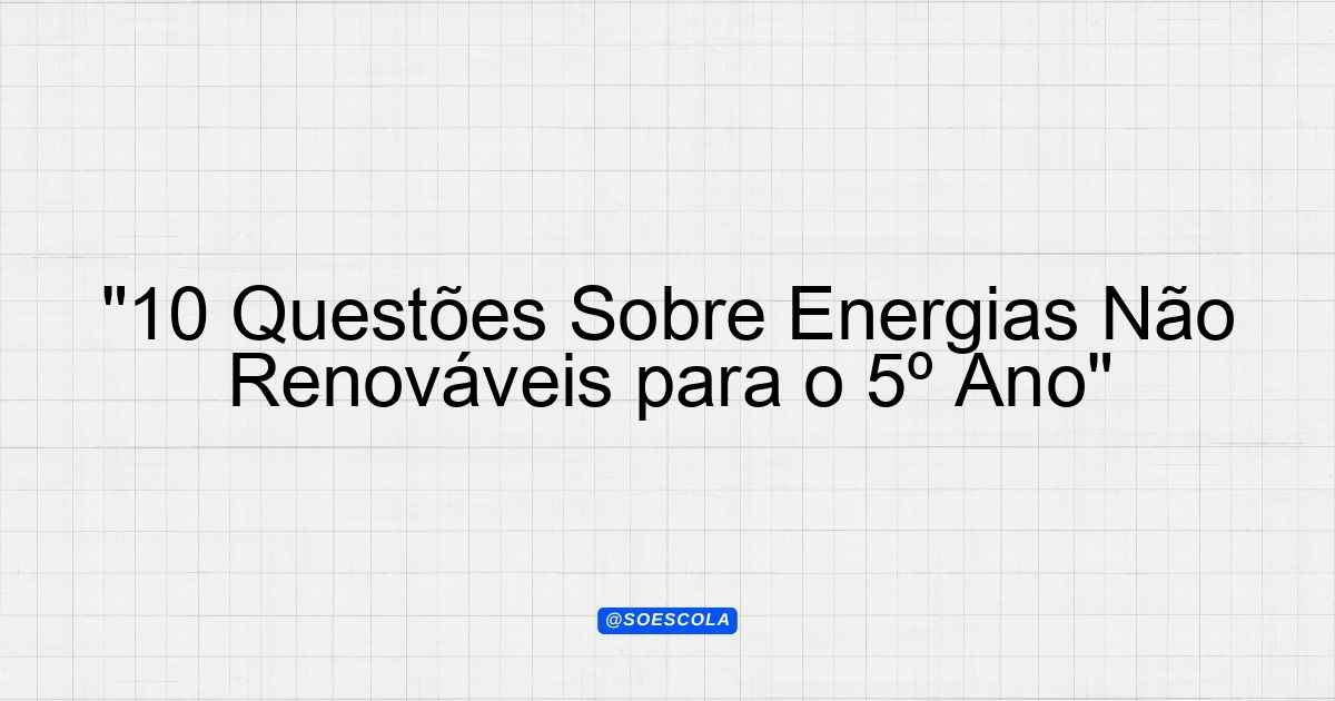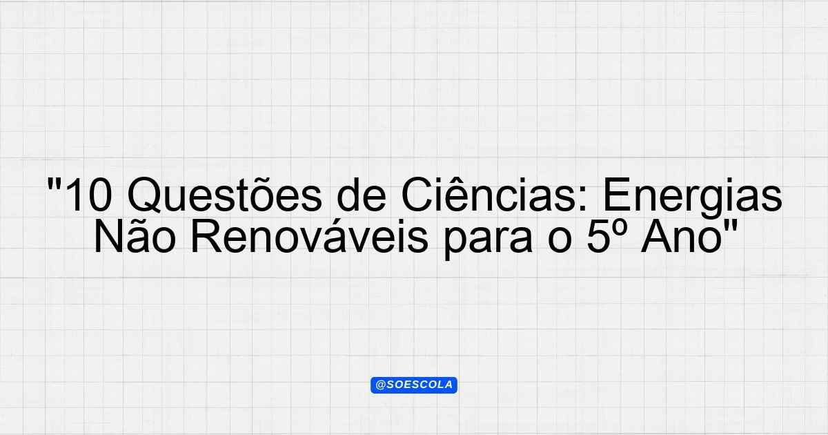 Continue lendoQuestões sobre: energias não renovaveis 📚 Área: Ciências Humanas 🎓 Nível: 5º Ano – Ensino Fundamental I 📊 Quantidade: 10