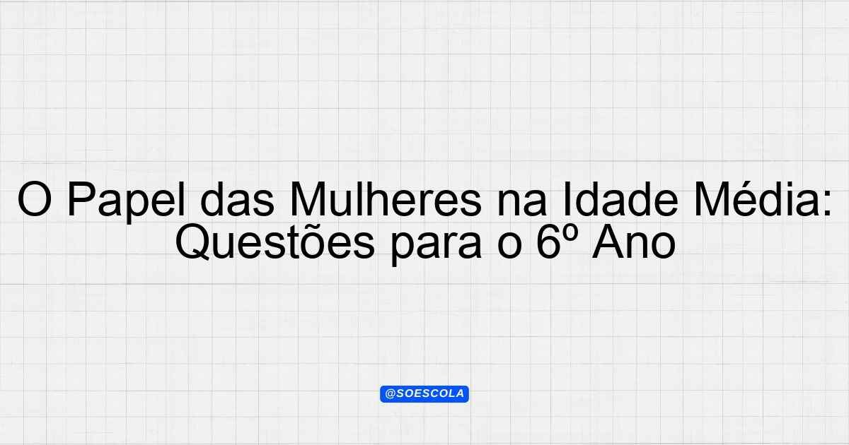 O Papel das Mulheres na Idade Média: Questões para o 6º Ano