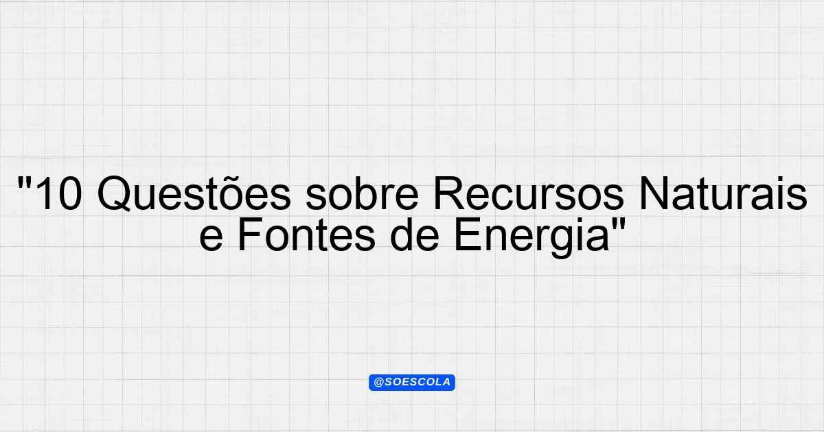 Continue lendoQuestões sobre: Recursos naturais e fontes de energia 📚 Área: Ciências Humanas 🎓 Nível: 9º Ano – Ensino Fundamental II