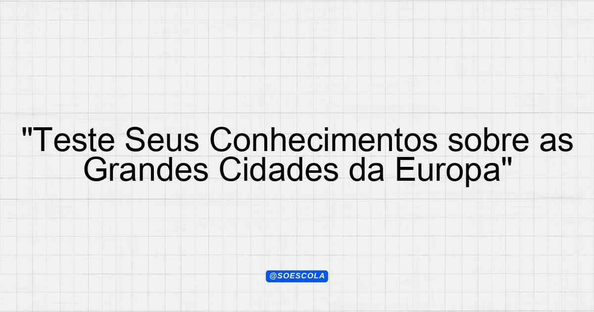 Continue lendoQuestões sobre: As grandes cidades europeias 📚 Área: Ciências Humanas 🎓 Nível: 9º Ano – Ensino Fundamental II 📊 Quantidade: