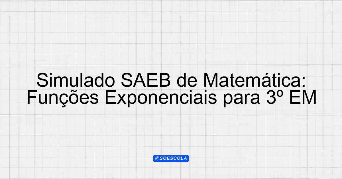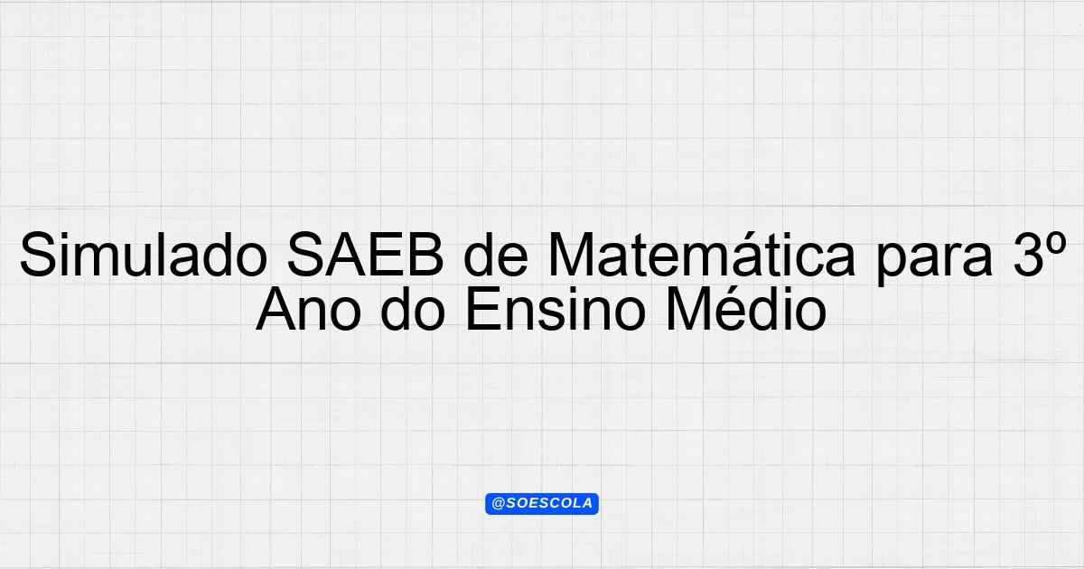 Continue lendoSimulado SAEB – Matemática – 3º ano EM 📚 Disciplina: Matemática 🎓 Série/Etapa: 3º ano EM 📝 Número de Questões:
