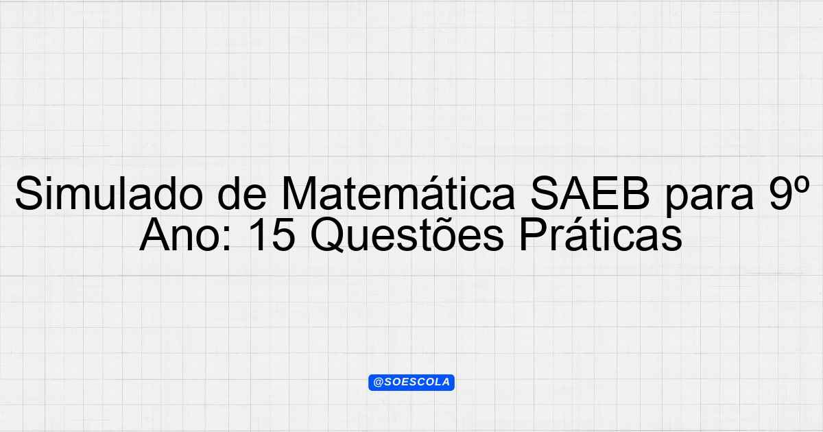 Continue lendoSimulado SAEB – Matemática – 9º ano EF 📚 Disciplina: Matemática 🎓 Série/Etapa: 9º ano EF 📝 Número de Questões: