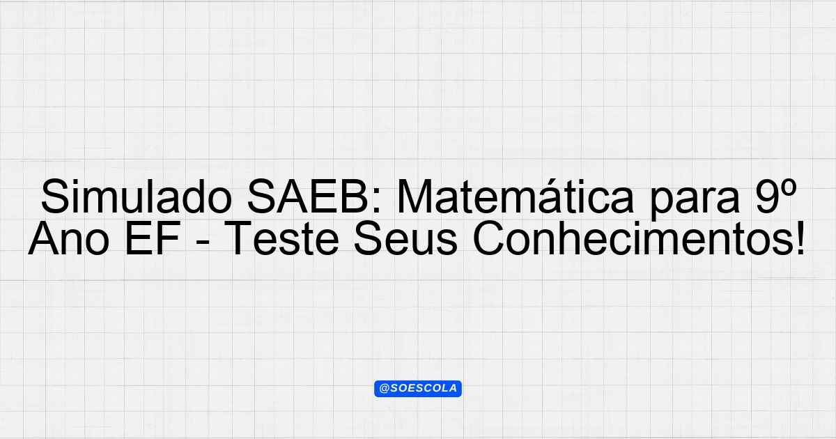 Continue lendoSimulado SAEB – Matemática – 9º ano EF 📚 Disciplina: Matemática 🎓 Série/Etapa: 9º ano EF 📝 Número de Questões: