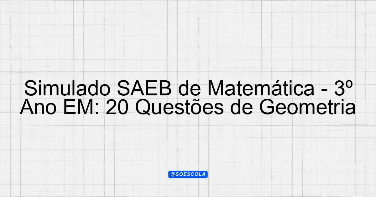 Continue lendoSimulado SAEB – Matemática – 3º ano EM 📚 Disciplina: Matemática 🎓 Série/Etapa: 3º ano EM 📝 Número de Questões: