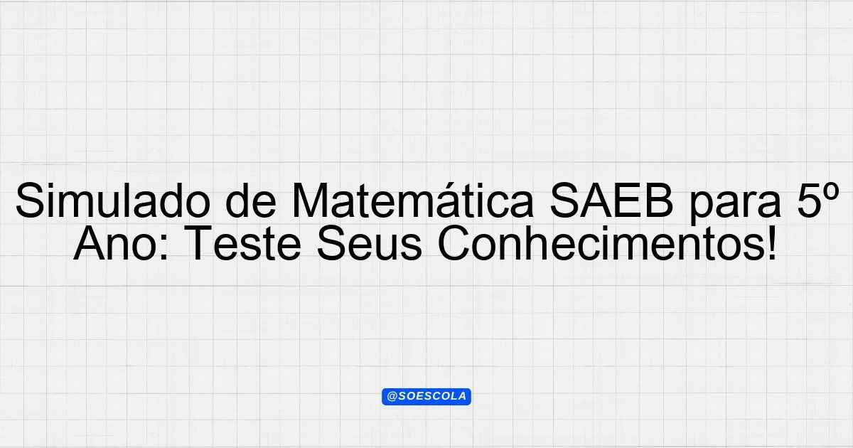 Continue lendoSimulado SAEB – Matemática – 5º ano EF 📚 Disciplina: Matemática 🎓 Série/Etapa: 5º ano EF 📝 Número de Questões: