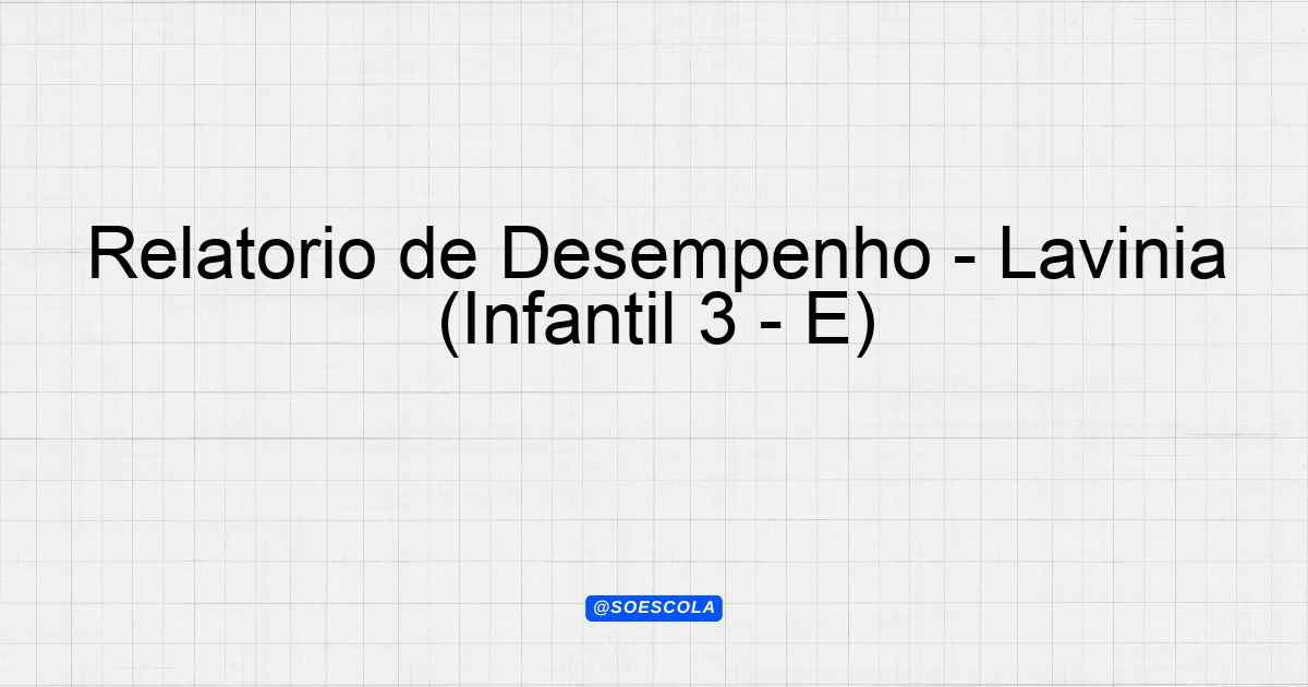 Continue lendoNesta postagem, vamos disponibilizar um relatório de desempenho para o aluno Lavínia, da Infantil 3, turma E, da escola CEI,