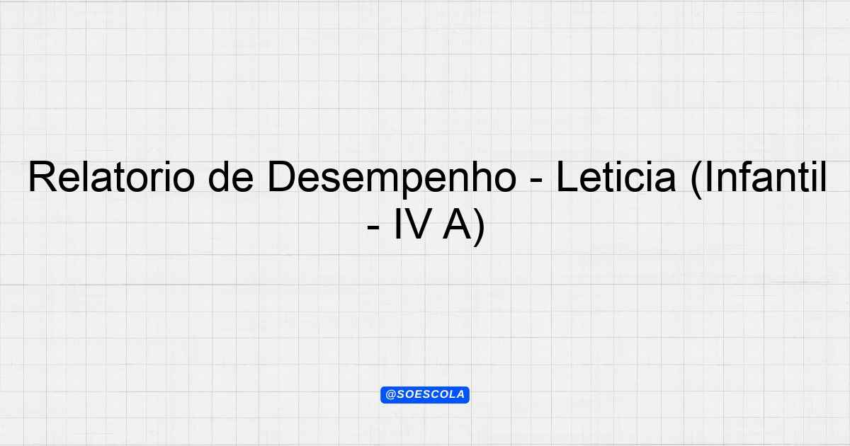 Continue lendoNesta postagem, vamos disponibilizar um relatório de desempenho para o aluno Letícia, da Infantil, turma IV A, da escola Neilza