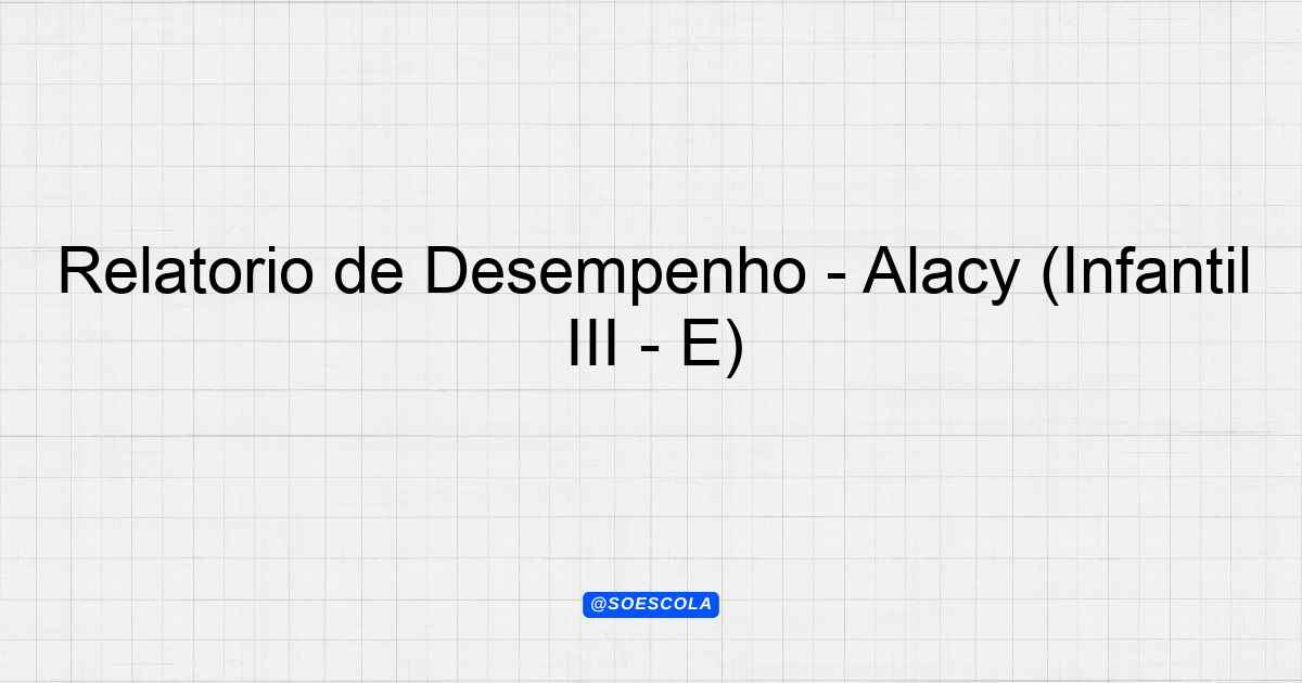 Relatório de Desempenho – Alacy (Infantil III – E)