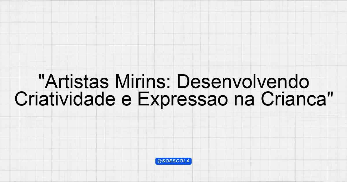 Continue lendoProjeto: “Artistas Mirins” Objetivo O projeto “Artistas Mirins” tem como finalidade estimular a expressão artística e a criatividade entre as