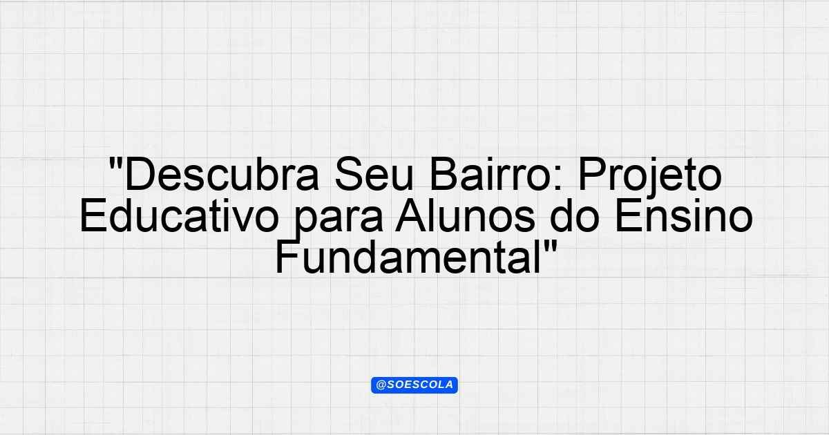 Continue lendoProjeto: “Conhecendo o Meu Bairro” 1. Objetivo O projeto “Conhecendo o Meu Bairro” tem como finalidade promover a compreensão das