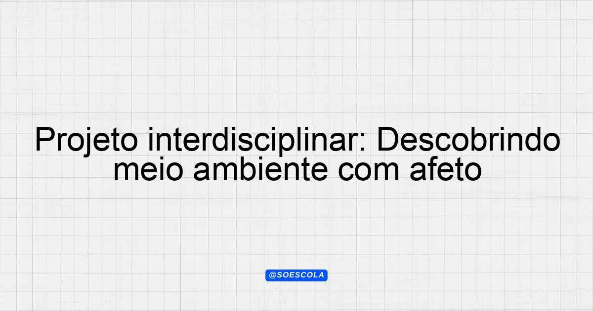Continue lendoProjeto Interdisciplinar: Descobrindo o Meio Ambiente com Afeto Introdução O projeto “Descobrindo o Meio Ambiente com Afeto” tem como objetivo