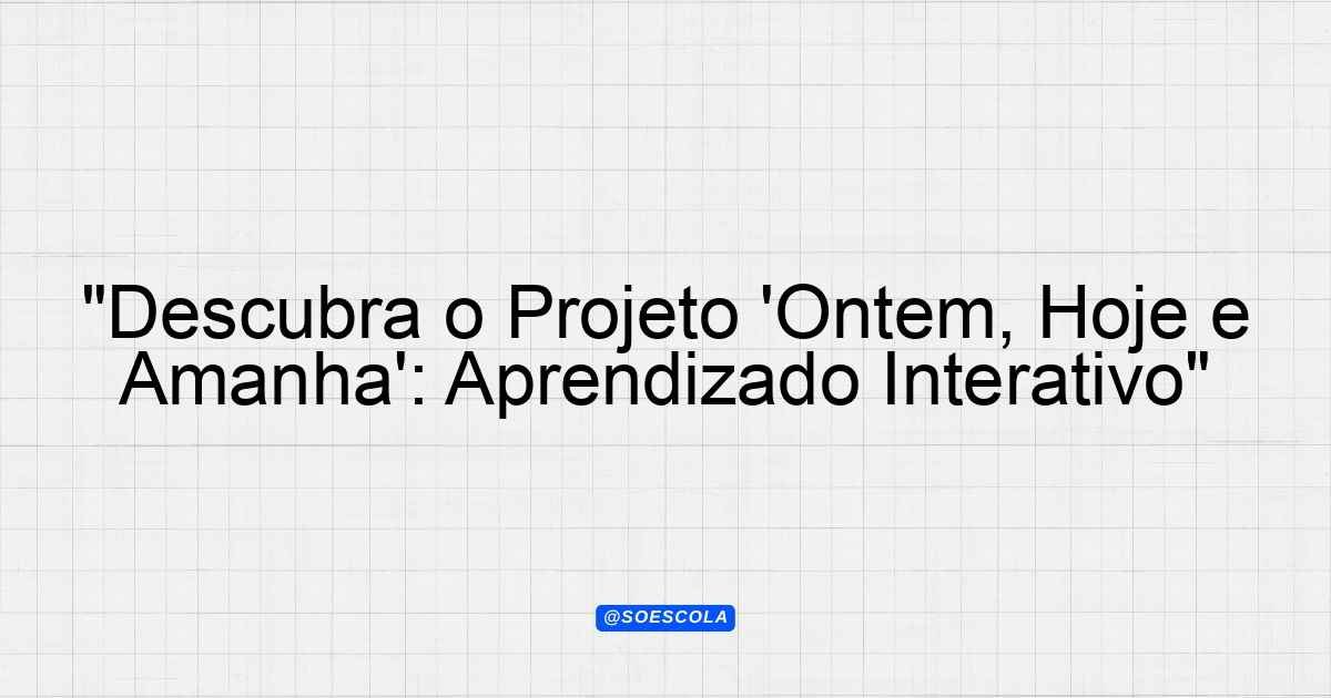 Continue lendoProjeto: “Ontem, Hoje e Amanhã” Objetivo O projeto “Ontem, Hoje e Amanhã” tem como finalidade desenvolver a noção de tempo