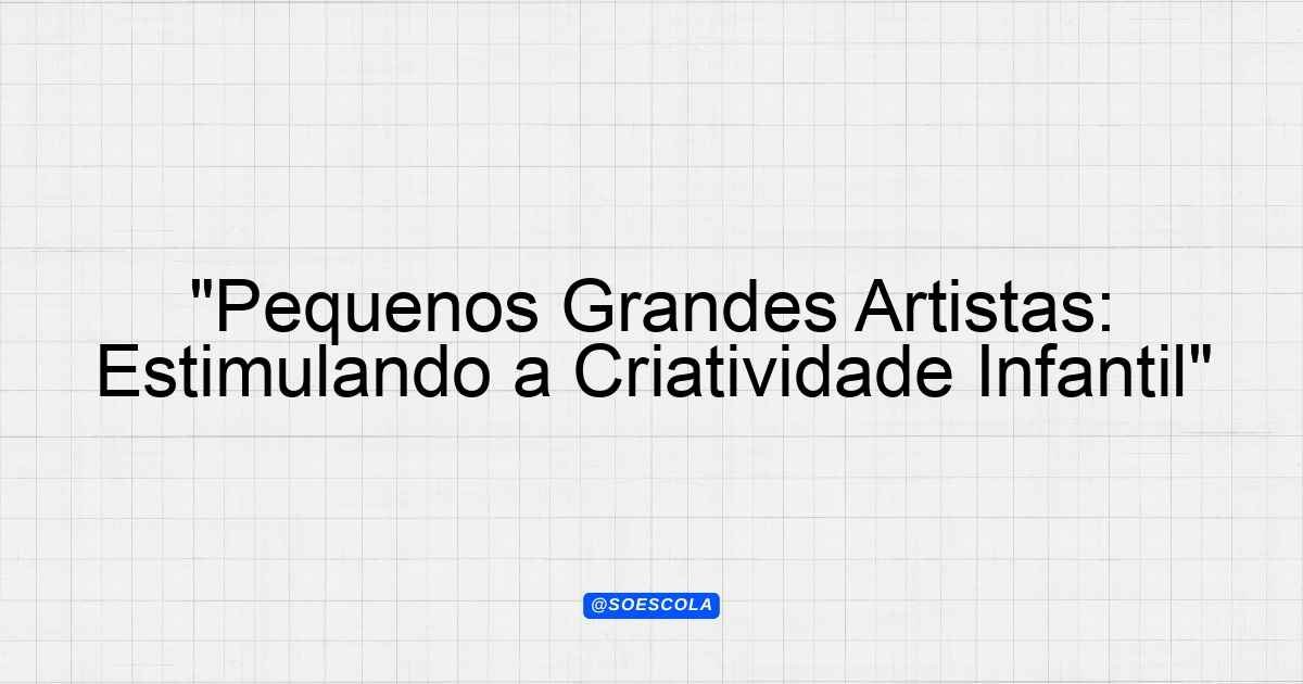 Continue lendoProjeto: “Pequenos Grandes Artistas” Objetivo O projeto “Pequenos Grandes Artistas” tem como principal finalidade estimular a expressão artística e a