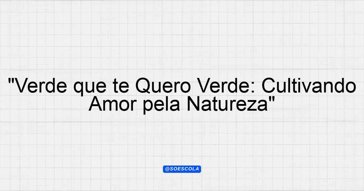 Continue lendoProjeto: “Verde que te Quero Verde” Objetivo O projeto “Verde que te Quero Verde” tem como principal meta incentivar o