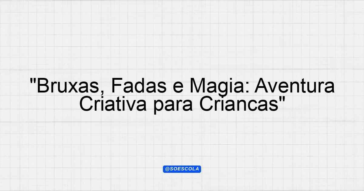 Continue lendoProjeto: “Bruxas, Fadas e Magia” Objetivo O projeto “Bruxas, Fadas e Magia” tem como principal objetivo explorar o imaginário infantil