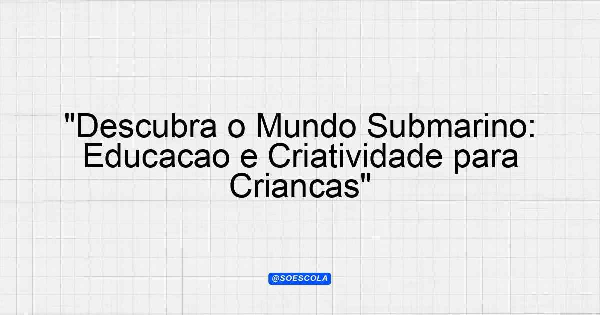 Continue lendoProjeto: “Mundo Submarino” Objetivo O projeto “Mundo Submarino” tem como objetivo explorar o universo dos animais e ambientes aquáticos. Através