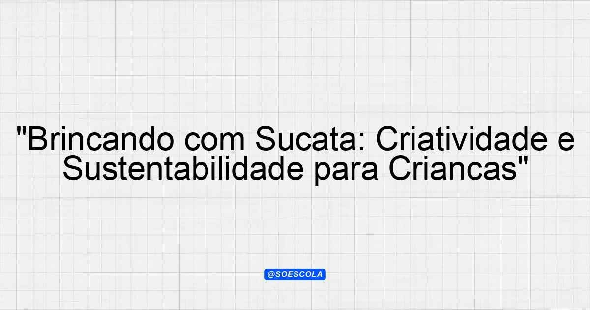 Continue lendoProjeto: “Brincando com Sucata” Objetivo do Projeto O projeto “Brincando com Sucata” tem como meta principal incentivar a criatividade das