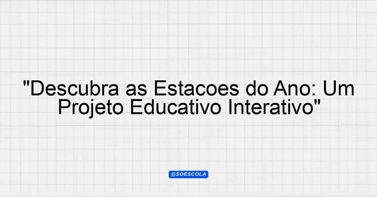 Continue lendoProjeto: “As Estações do Ano” Objetivo O objetivo do projeto “As Estações do Ano” é explorar e compreender as características