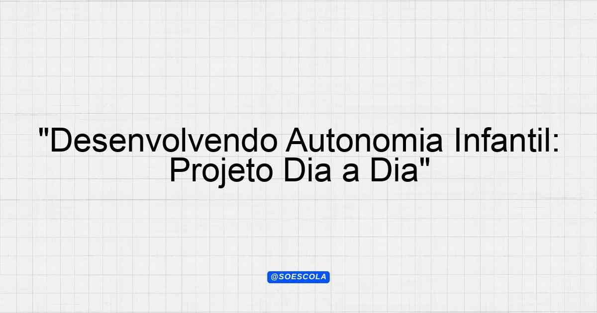 Continue lendoProjeto: “Dia a Dia com Autonomia” 1. Introdução O projeto “Dia a Dia com Autonomia” tem como principal objetivo promover