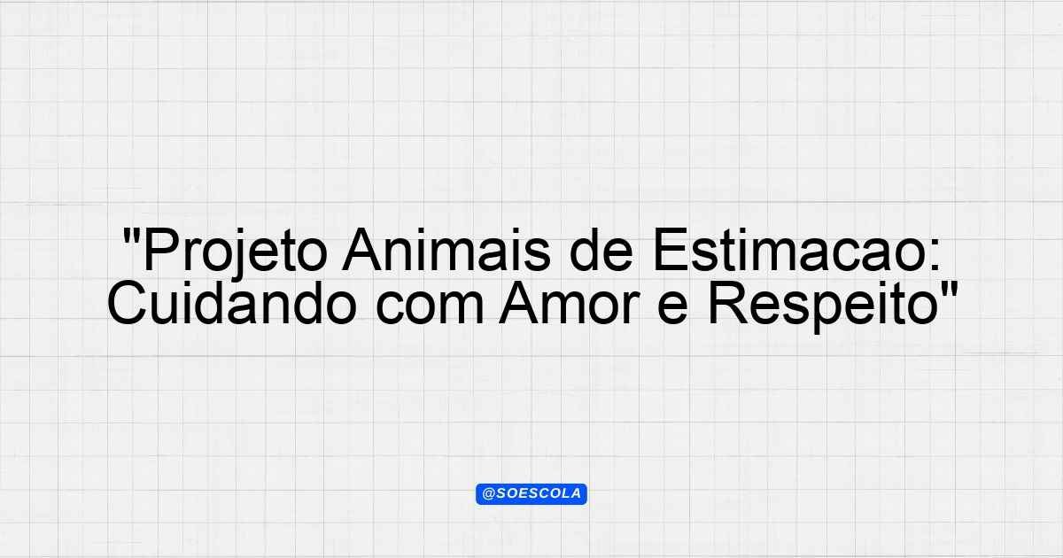 Continue lendoProjeto: “Animais de Estimação” Objetivo O projeto “Animais de Estimação” visa promover o cuidado, respeito e afeto pelos animais, ensinando
